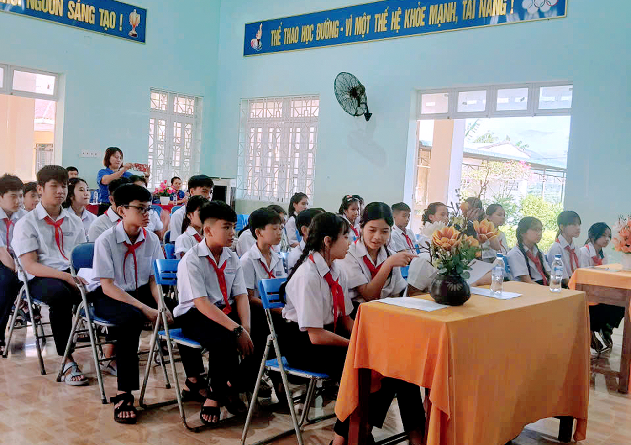 Cùng các giáo viên là tổ chuyên môn, phụ trách chi và 38 đội viên đại diện các chi đội được triệu tập dự Đại hội.