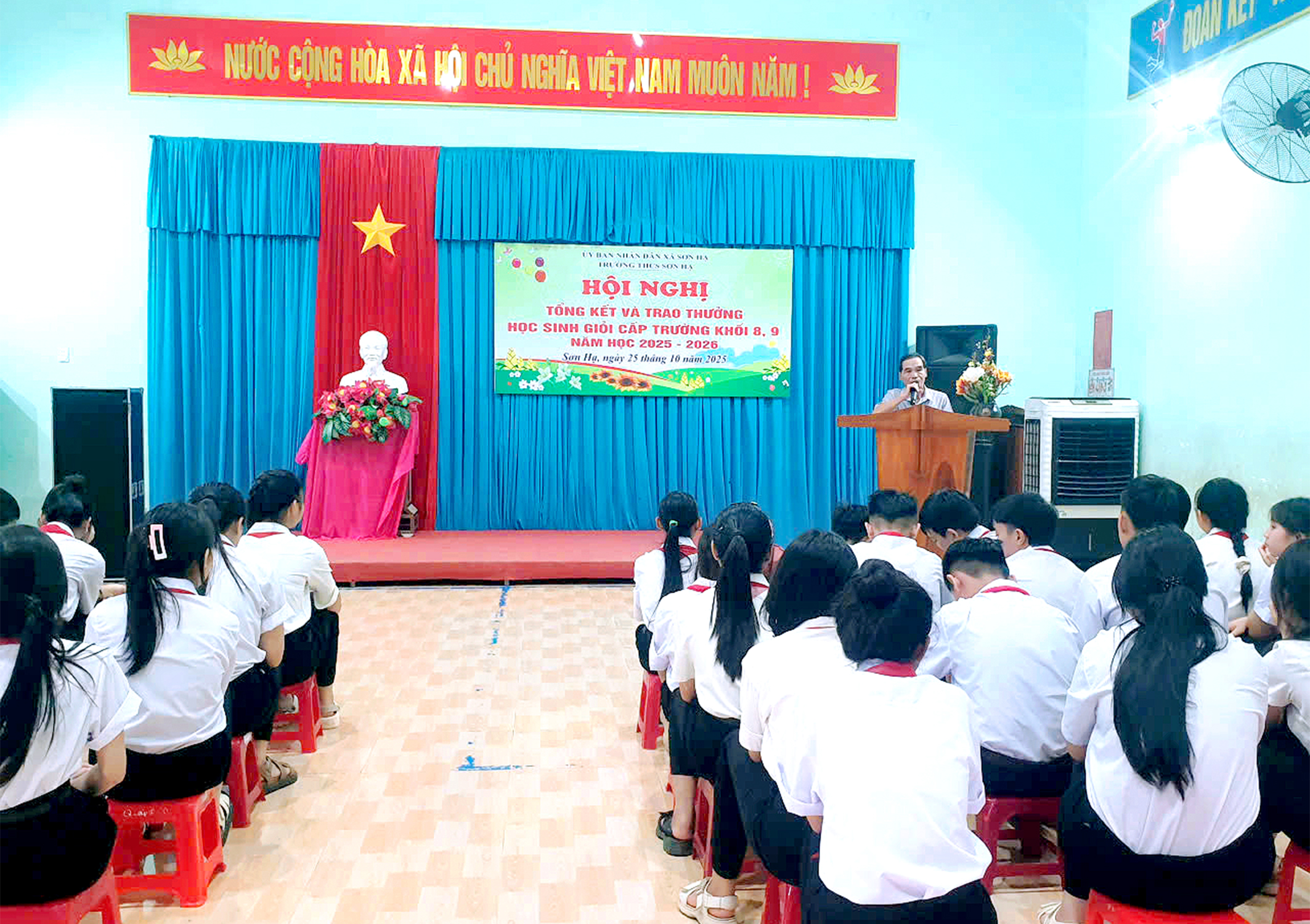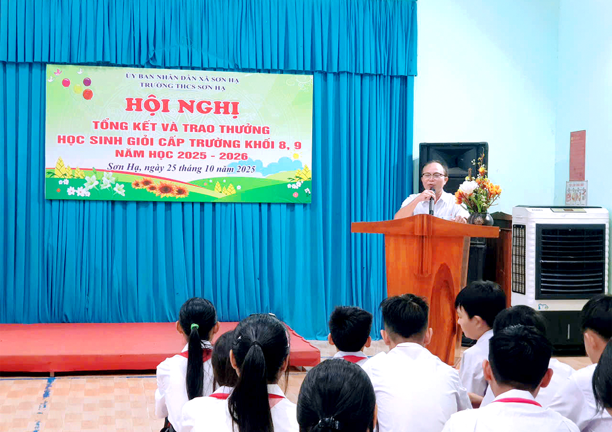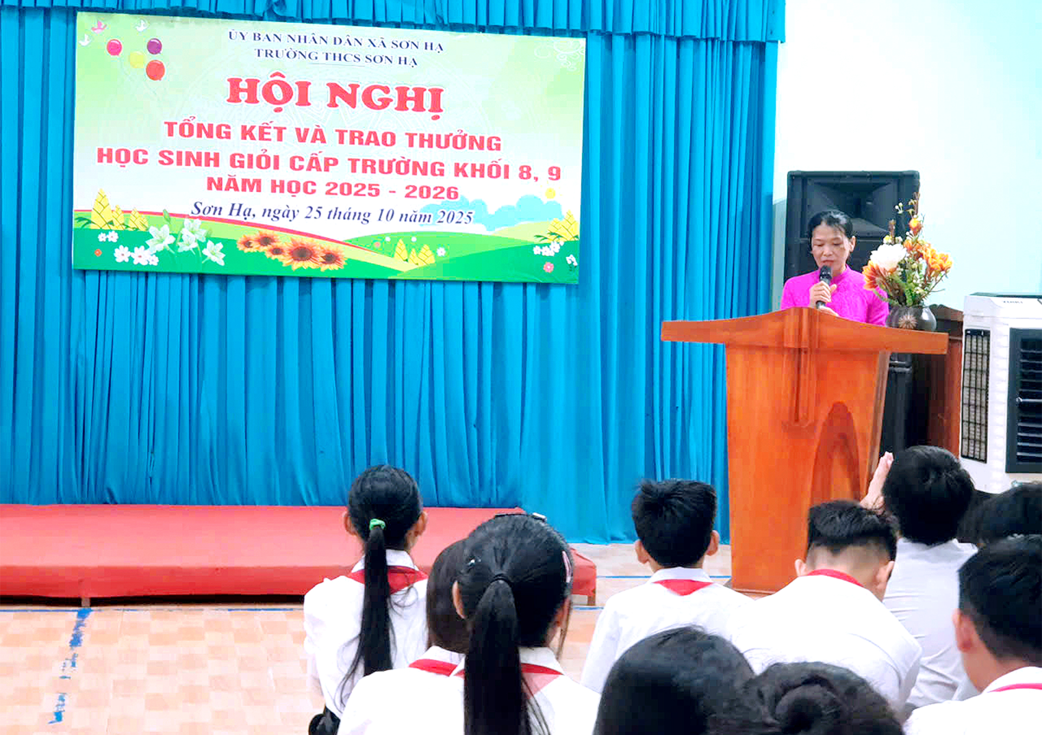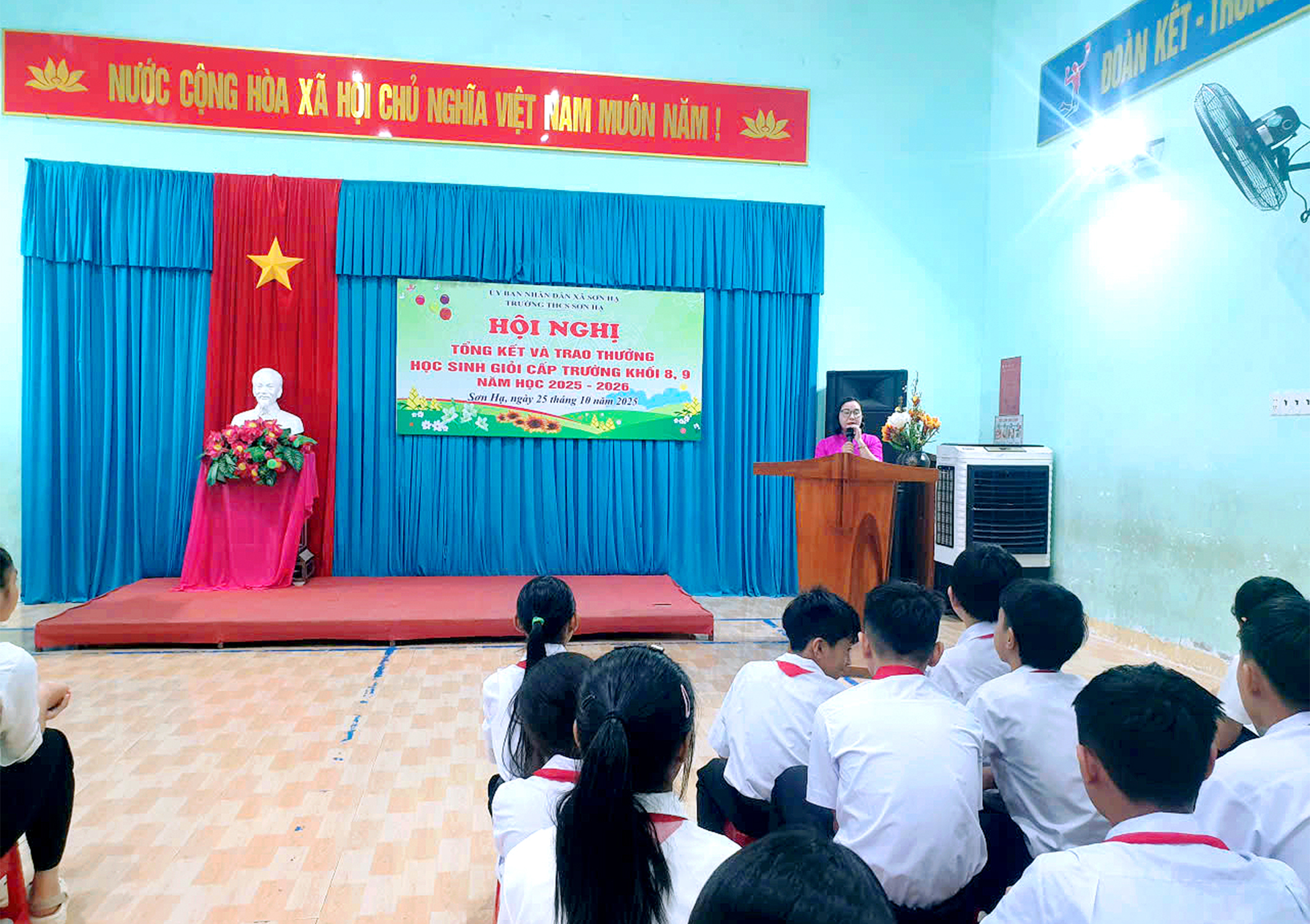 Chiều ngày 25 tháng 10 năm 2025, trường THCS Sơn Hạ long trọng tổ chức Hội nghị tổng kết và trao thưởng học sinh giỏi cấp trường khối 8, 9 năm học 2025 – 2026.
