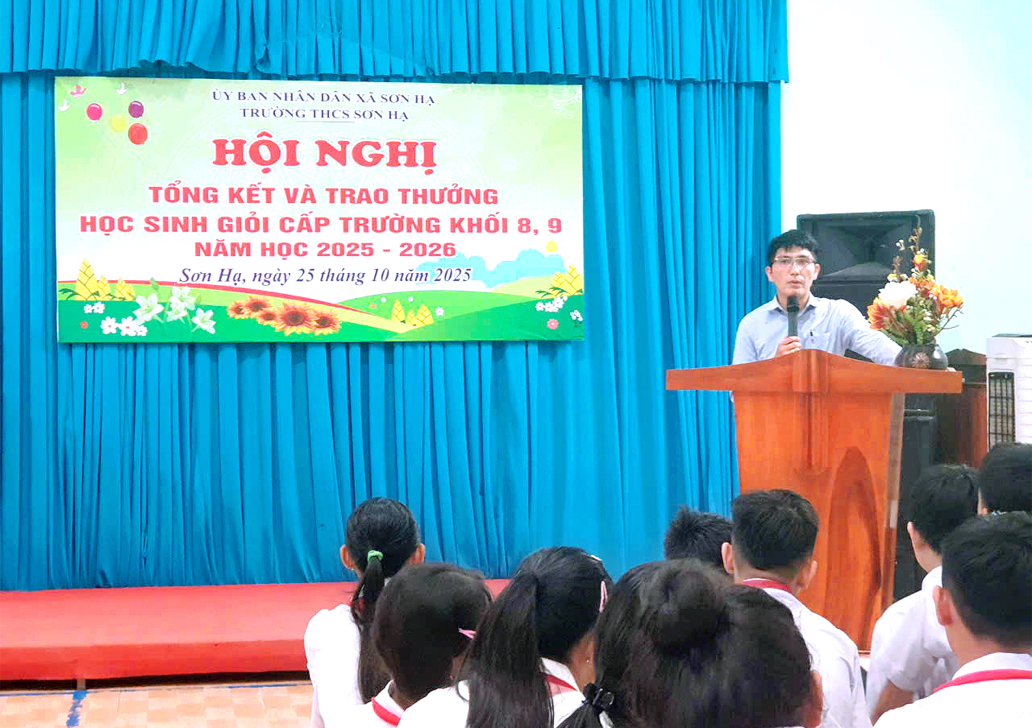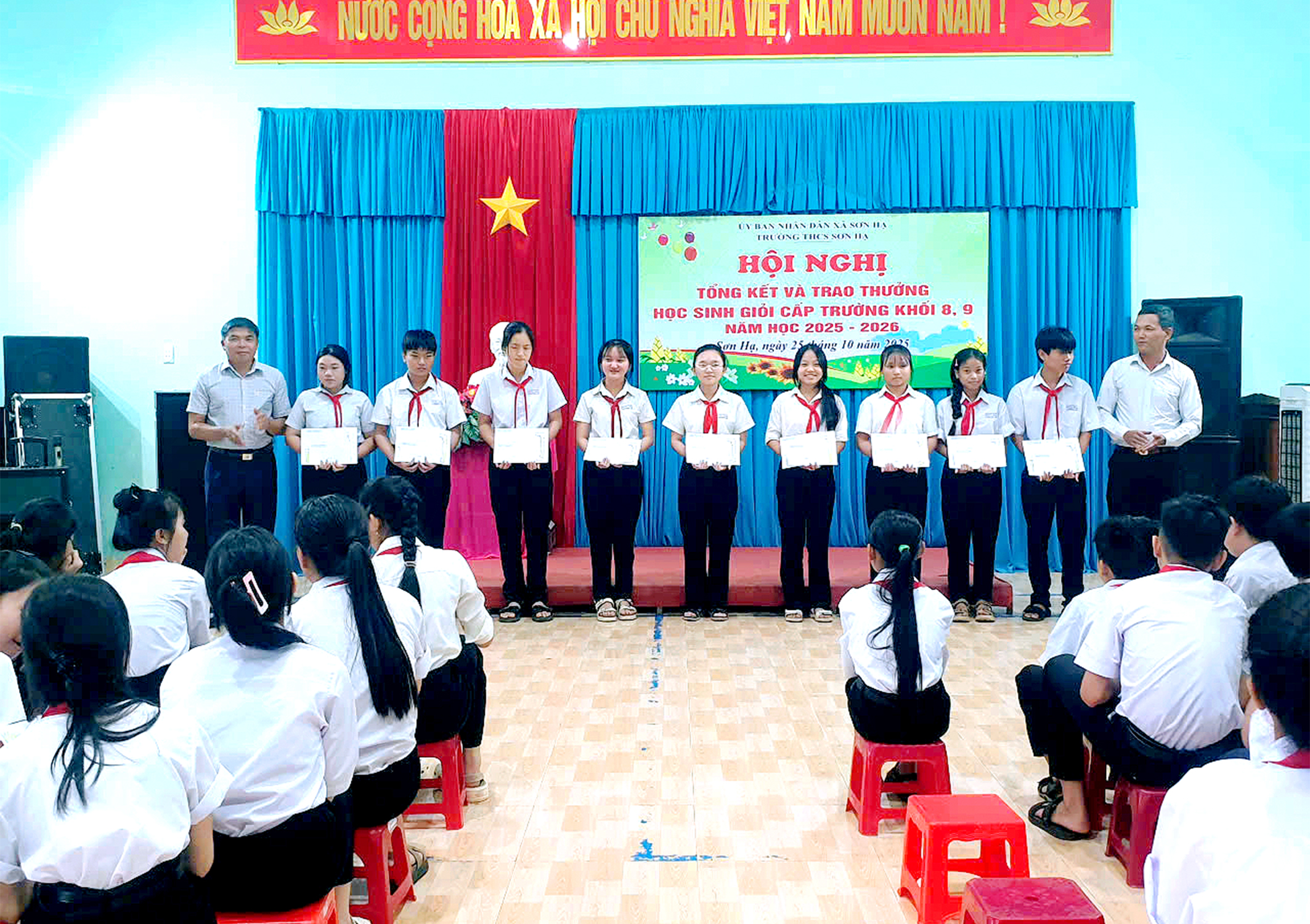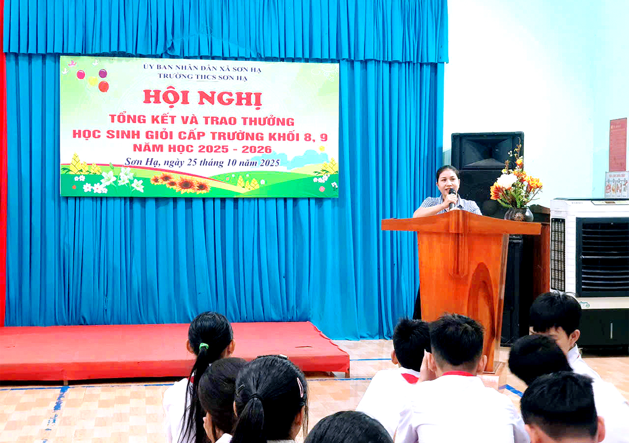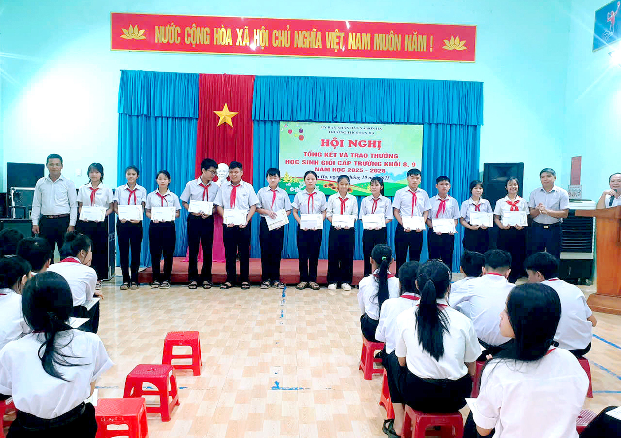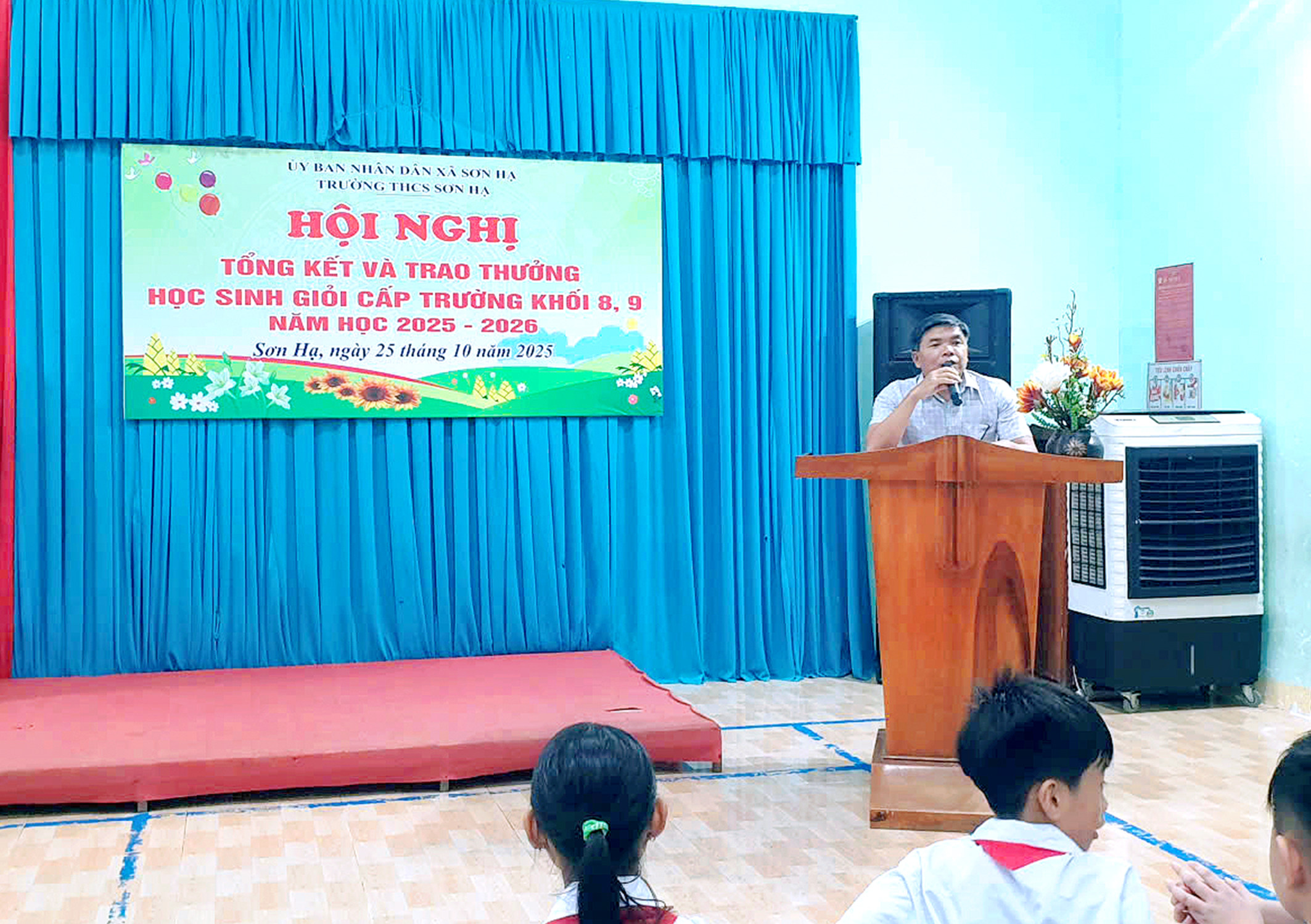 Chiều ngày 25 tháng 10 năm 2025, trường THCS Sơn Hạ long trọng tổ chức Hội nghị tổng kết và trao thưởng học sinh giỏi cấp trường khối 8, 9 năm học 2025 – 2026.
