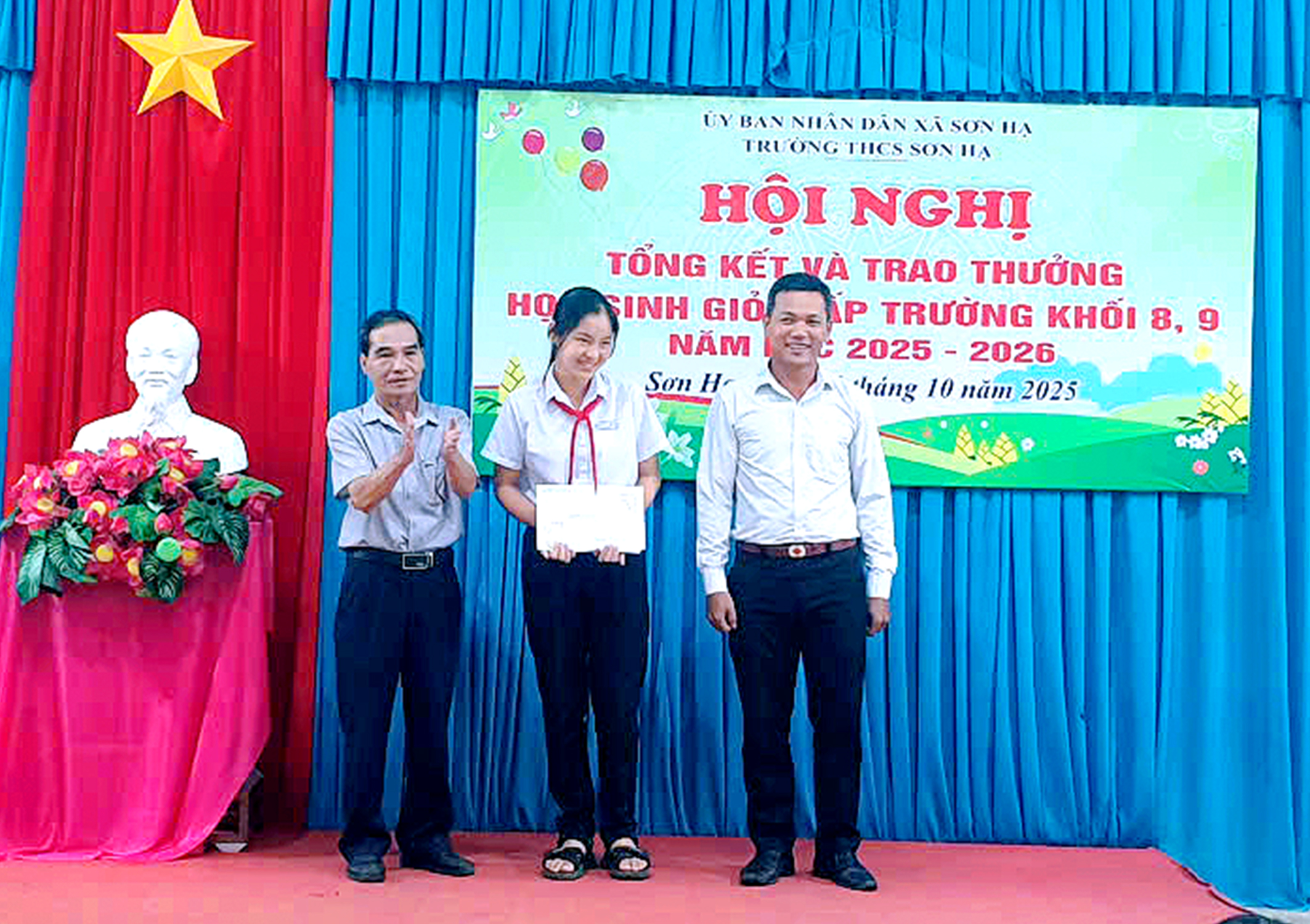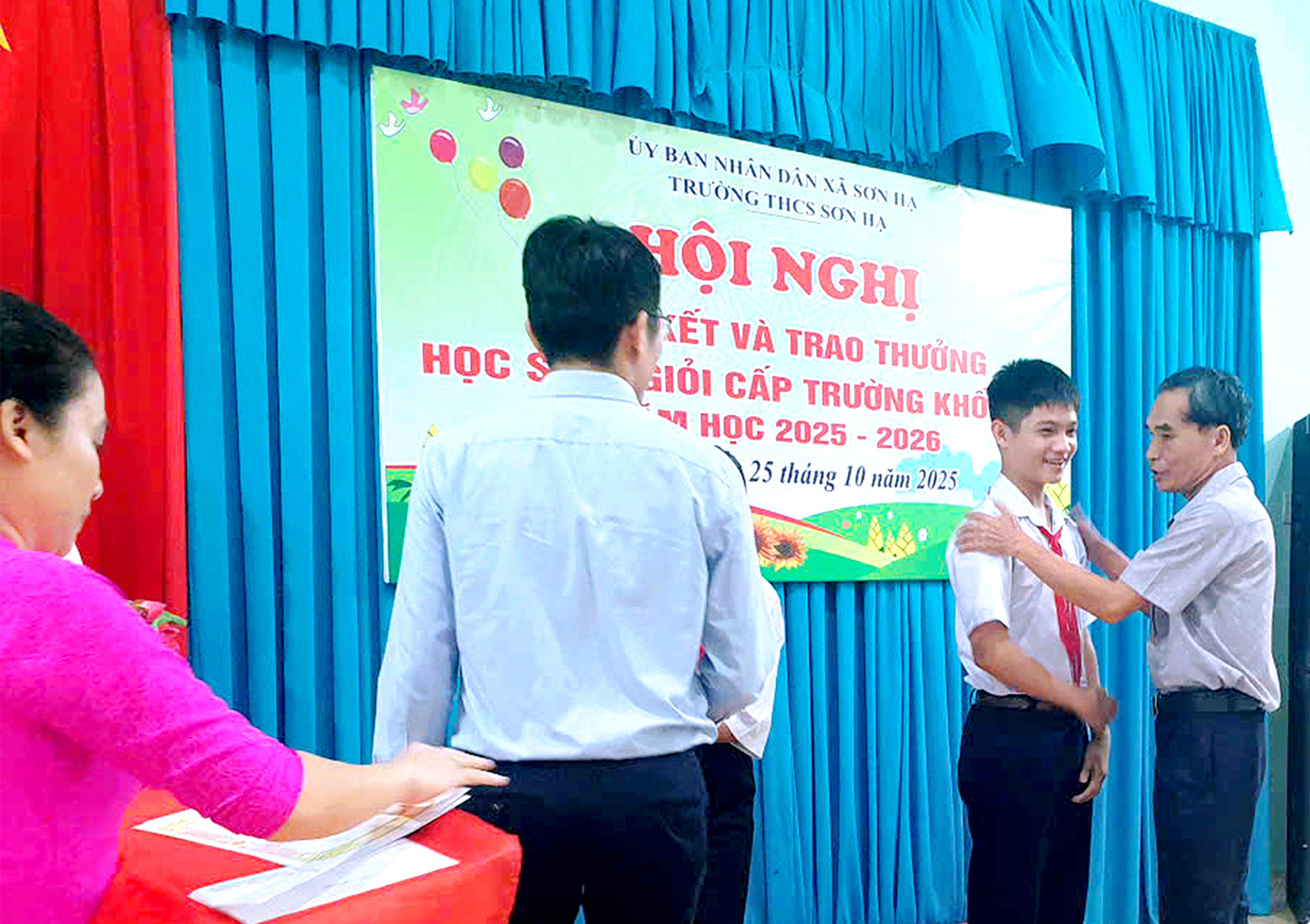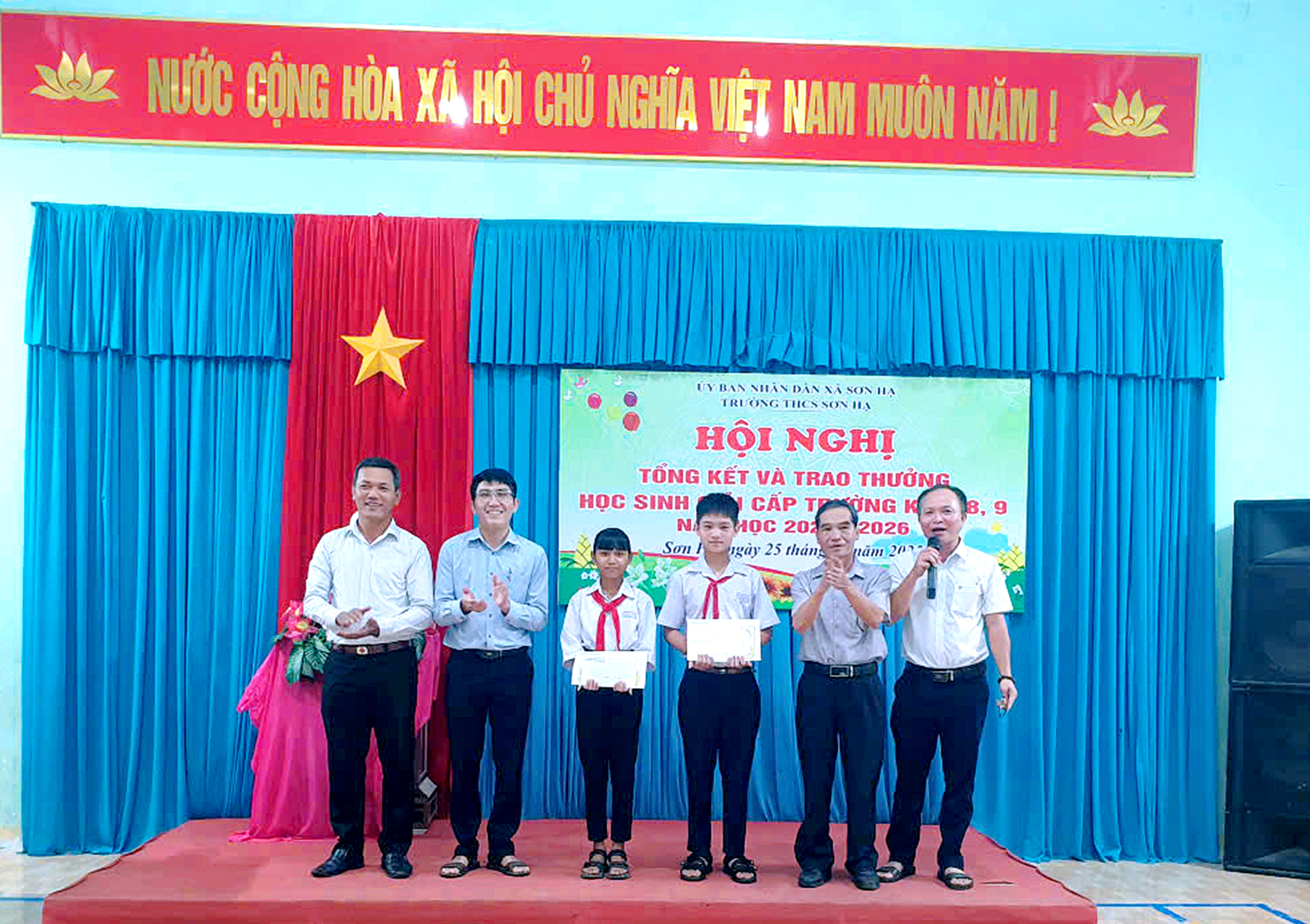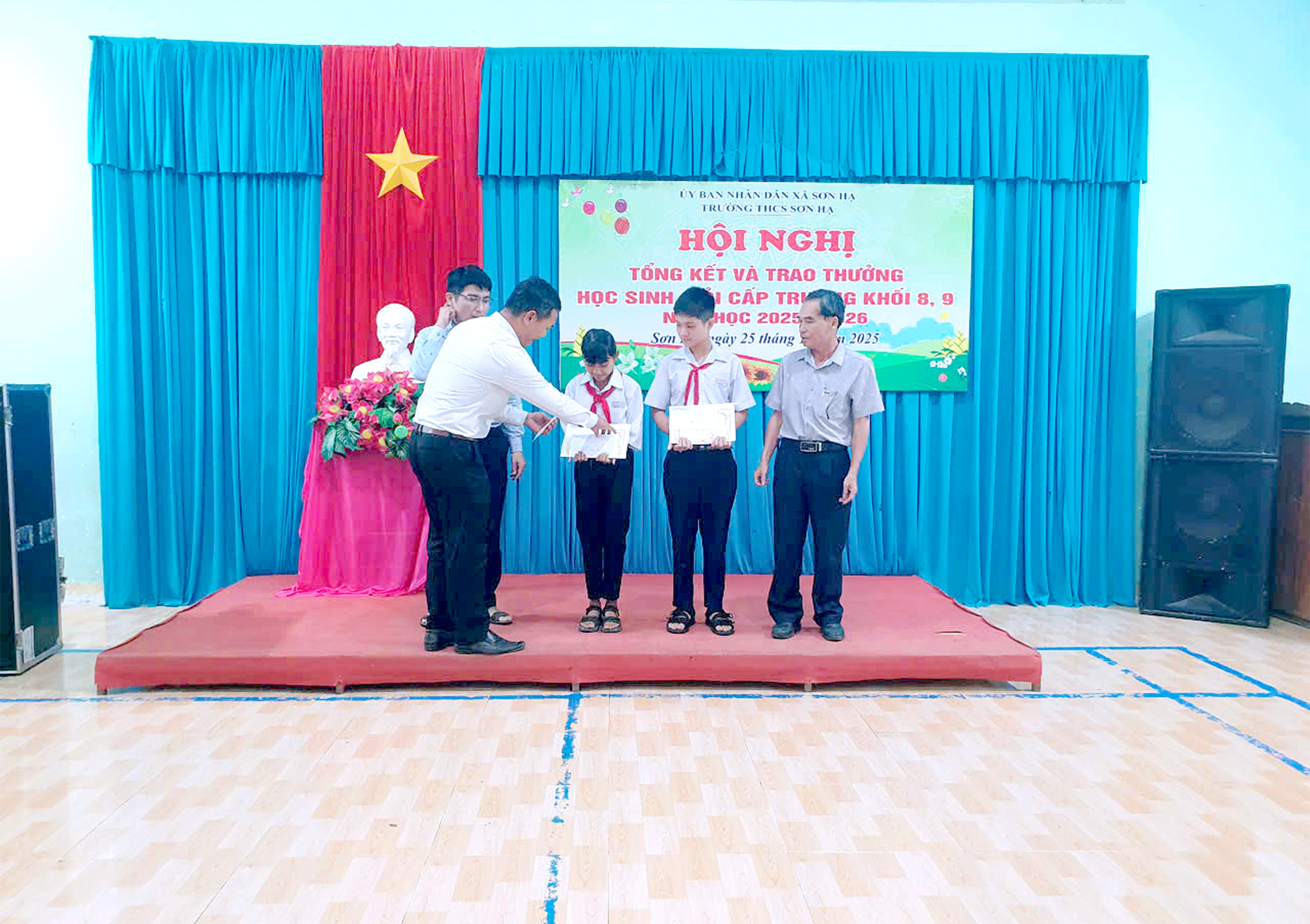 Chiều ngày 25 tháng 10 năm 2025, trường THCS Sơn Hạ long trọng tổ chức Hội nghị tổng kết và trao thưởng học sinh giỏi cấp trường khối 8, 9 năm học 2025 – 2026.